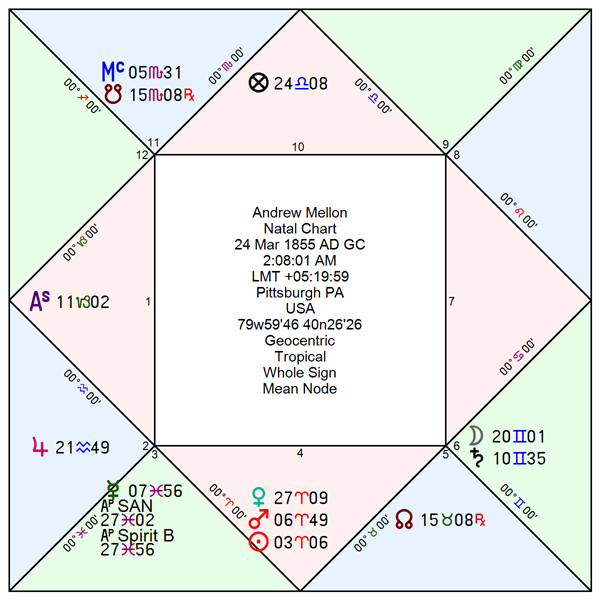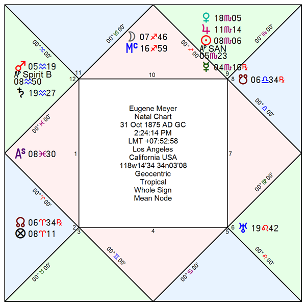 Strong’s influence became so dominant that the first six Washington-based Governors of the Federal Reserve Board are often omitted in early Fed histories. They were Charles S. Hamlin (1914-1916), W. P. G. Harding (1916-1922), Daniel R. Crissinger (1923-1927), Roy A. Young (1927-1930), Eugene Meyer (1930-1933), and Eugene R. Black (1933-1934). For the Regulus LLC natal database, I include both Roy Young and Eugene Meyer who sat as Governors following Benjamin Strong’s death in 1928. Both Young and Meyer proved unable to articulate or implement a coherent response to the gathering economic crisis. Lacking a philosophical foundation for intervention, they presided over a Federal Reserve that failed to counteract the deflationary spiral of the Great Depression.