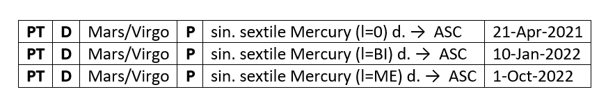 Here is the Mercury-Ascendant primary direction sequence: