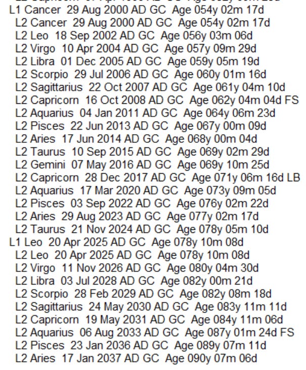 Bottom line: Trump won the 2016 Presidential election during the North Node Firdaria period, lost the 2020 election during the South Node period, and announced his 2024 Presidential bid on November 15, 2022—just two days before the end of his Sun–Sun Firdaria period.