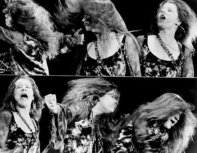 Photo montage of Janis Joplin performing on the television program “Music Scene,” October 21, 1969. Public domain image.