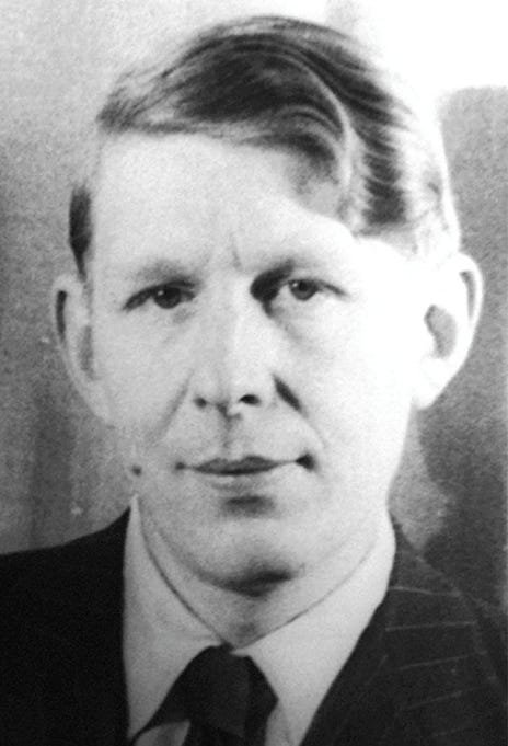 In early middle age, W. H. Auden presents a compact, thick-set body with a grounded, slightly stocky build rather than a slender or elongated frame, giving the impression of physical density and contained force. His face is rectangular and heavy in its underlying structure, with broad planes across the forehead and cheeks, a thick jaw, and a general squareness to the skull that makes the features read as solid rather than refined. The nose is blunt and broad through the bridge and tip, the chin substantial and rounded, and the mouth soft-edged, often held in a compressed, inward expression that suggests emotional containment rather than outward charm. His eyes sit deep and slightly hooded beneath heavy brows, giving the gaze a shadowed, inward-looking quality, while the overall facial architecture favors thickness and compression over sharp angles or delicacy. Even before age and smoking deeply furrowed his features, the face already carried a look of pressure and gravity, as if the body itself bore the marks of inner tension and moral weight rather than ease or lightness.